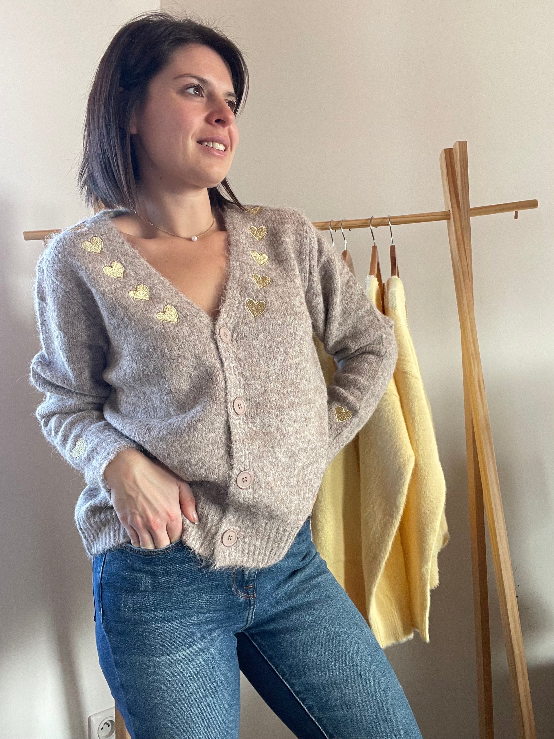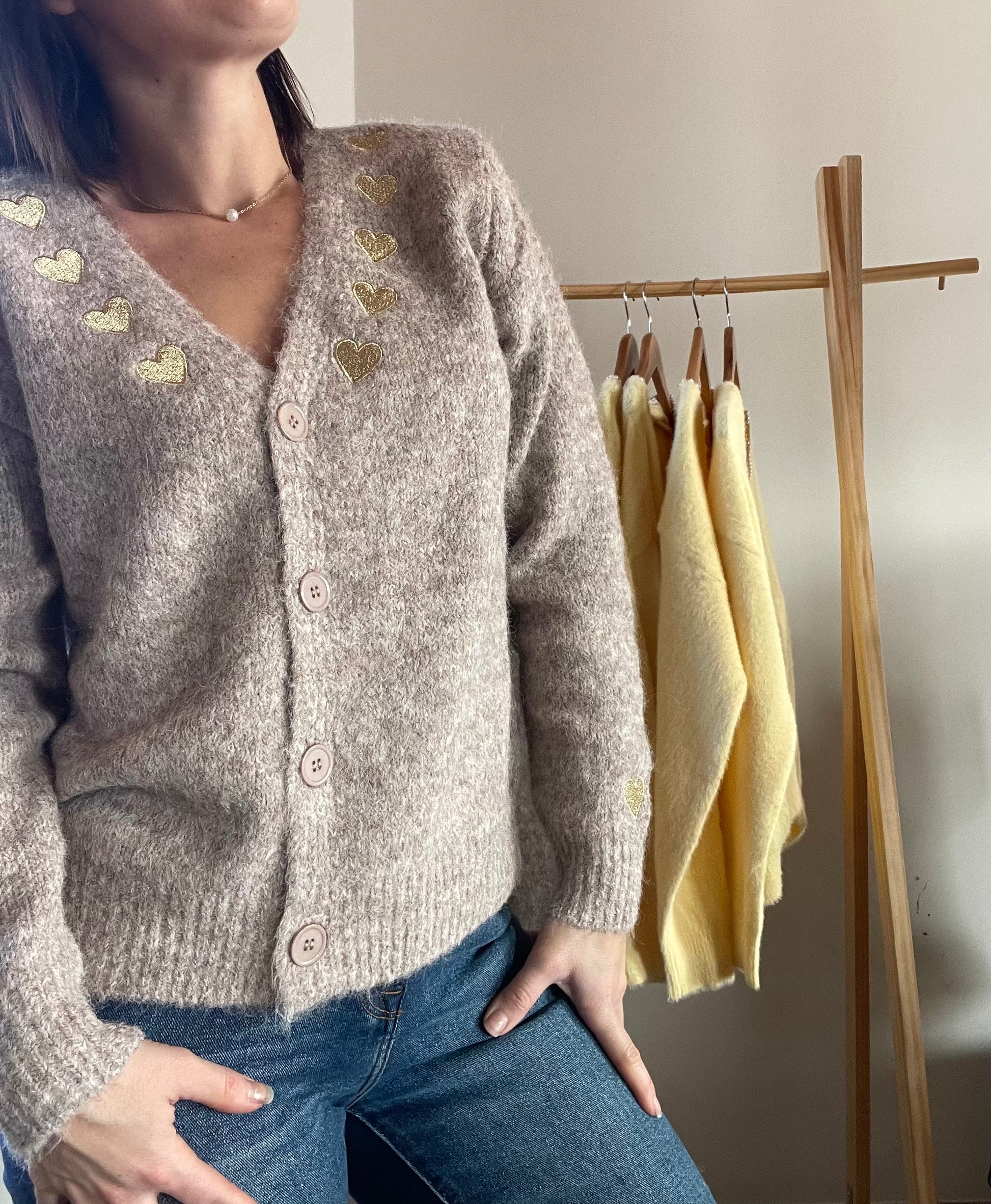 Il est tout doux, il tient chaud, notre magnifique gilet bonheur, au couleur taupe chiné 🤎