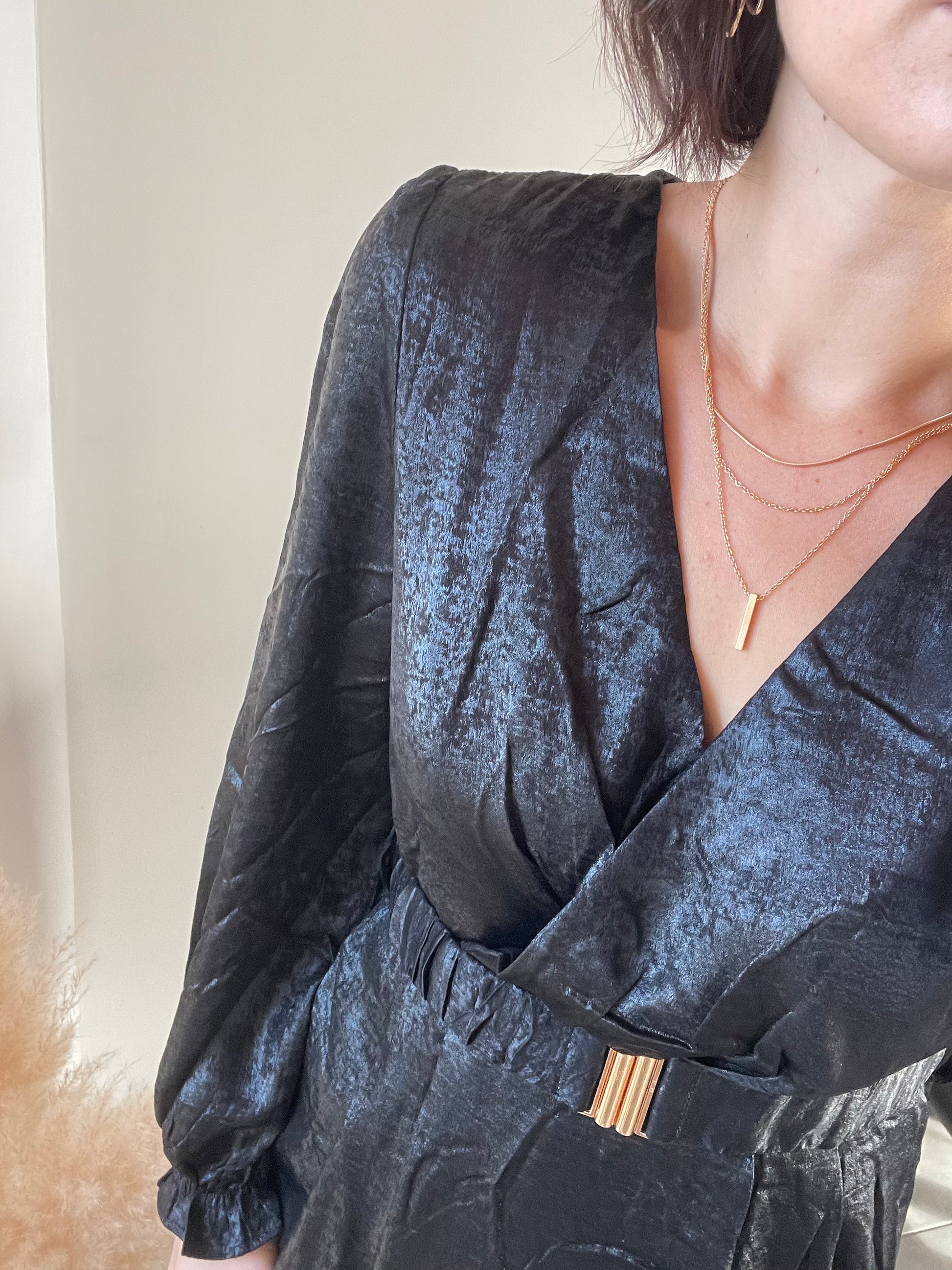 Une robe très simple de par sa coupe, mais tellement chic de par son noir scintillant, une pure beauté ! ✨😍